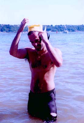 M. Louis Campagna, secrétaire-trésorier de la Société des Gens de Baignade, lors de la traversée du fleuve Saint-Laurent.