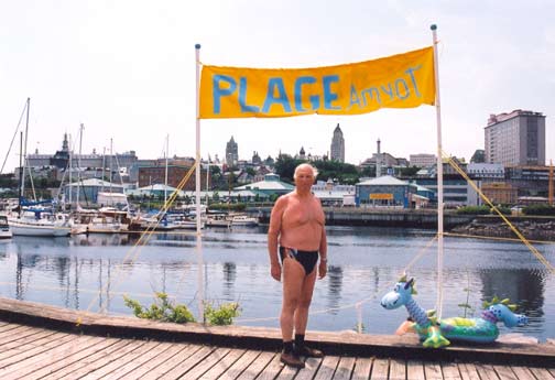 Gens de Baignade, pose devant l'endroit appelé à devenir une plage publique