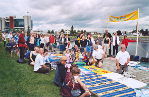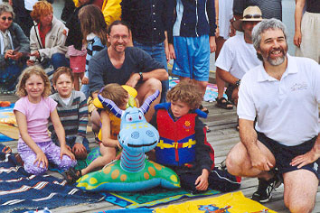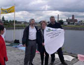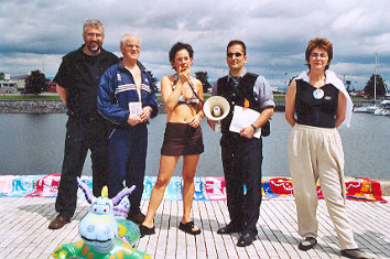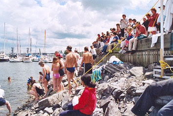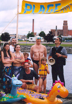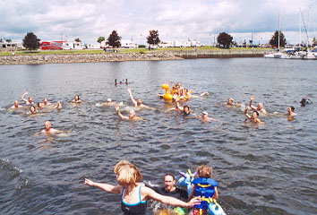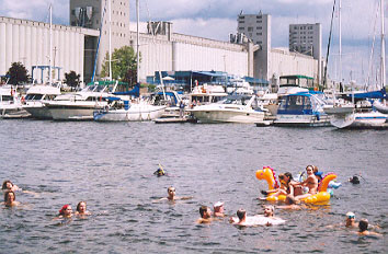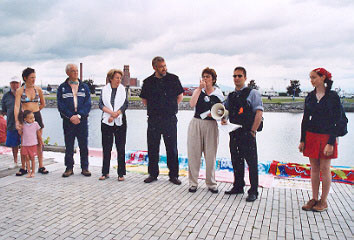 sur le quai avant la baignade symbolique dans le bassin Louise. |